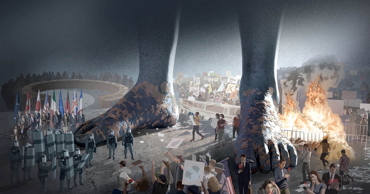 Daniel 2:42And as the toes of the feet were partly of iron and partly of clay, so the kingdom shall be partly strong and partly fragile [brittle].